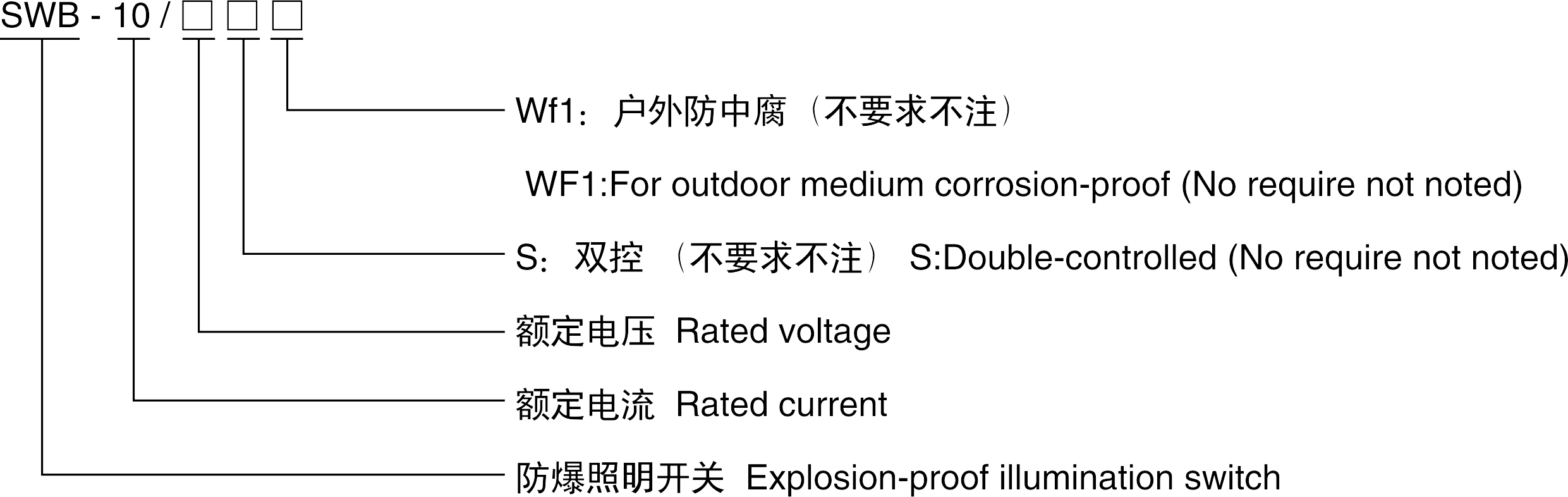 > 請根據(jù)“型號含義”注明所需產(chǎn)品詳細的規(guī)格,防爆標志。